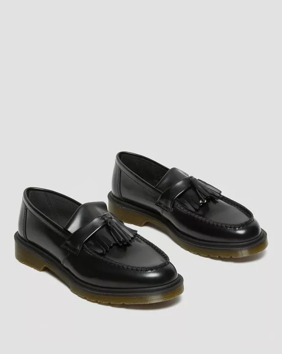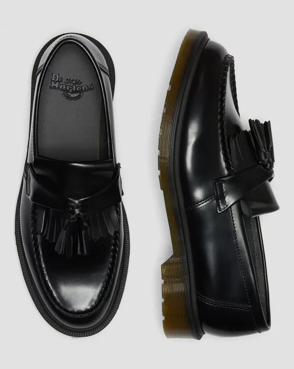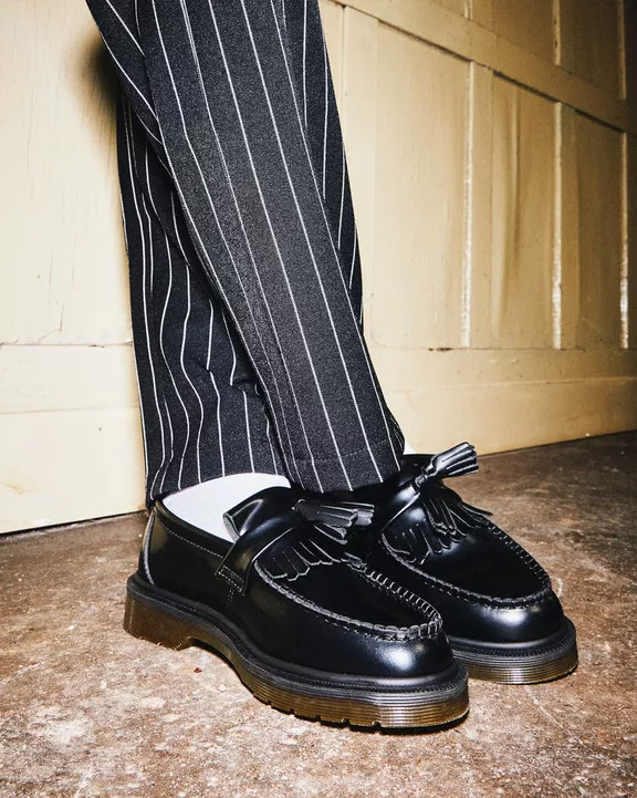 Clásicos, redefinidos. El mocasín Adrian combina un estilo de inspiración mod con la robusta durabilidad de DM, detallado con borlas dobles y flecos estilo kiltie. Nuestro cuero liso pulido duradero se puede usar pulido a la perfección o desgastado y resistente. La suela ranurada mantiene el rebote en tu paso, asegurada con una construcción simple soldada Goodyear.
