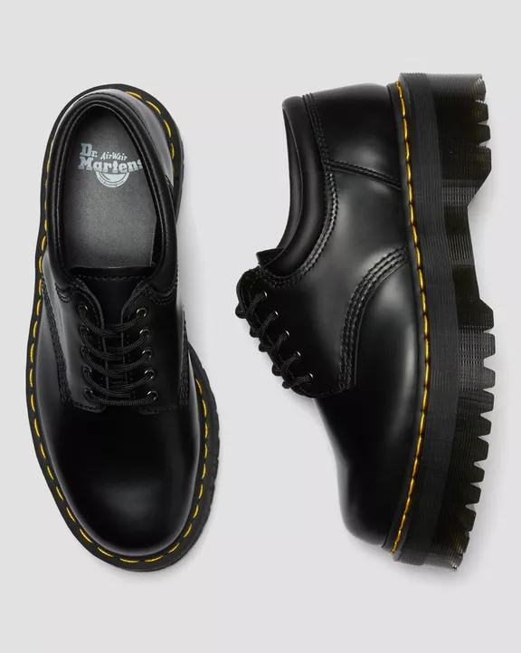 Comodidad a nuevas alturas. El modelo 8053 presenta una silueta de cinco ojales con cuello acolchado: una amortiguación extra para que puedas disfrutar de un día largo sin complicaciones. Esta versión de plataforma se apoya en nuestra gruesa suela Quad para realzar cualquier atuendo sin sacrificar la comodidad. Nuestras reconocibles costuras amarillas y bordes acanalados rematan la suela. El zapato está fabricado con cuero Polished Smooth, que se adapta a tus pies con cada uso y luce genial con o sin brillo. Altura de plataforma: aproximadamente 3,8 cm. Exterior: 100% cuero. Forro: 55% cuero, 45% textil. Suela: 100% PVC.