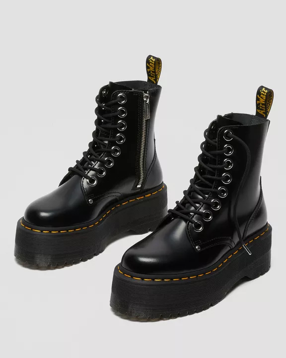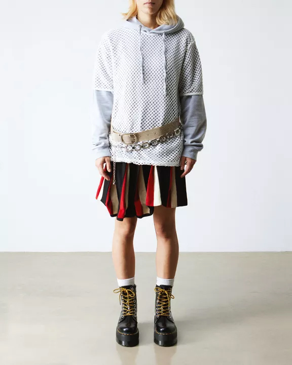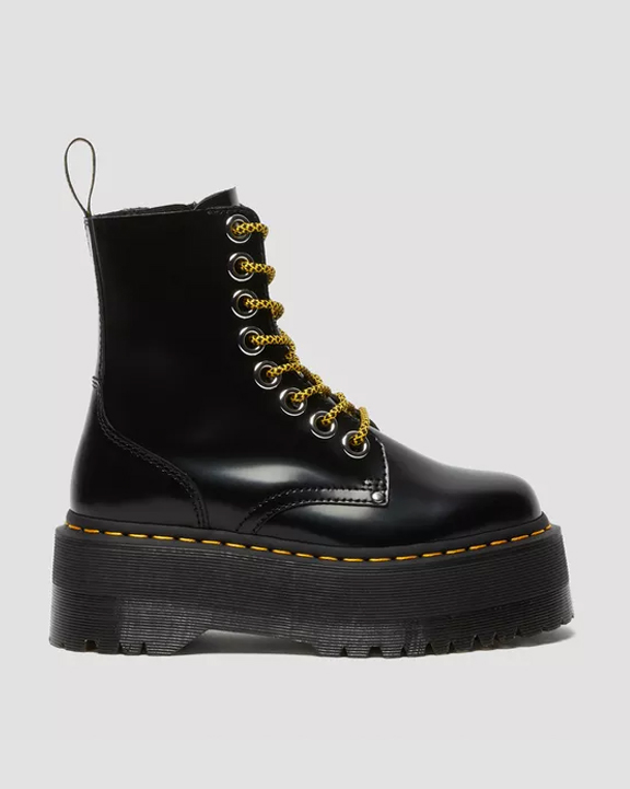 Ya está aquí. Nuestra plataforma más alta hasta la fecha. La Quad Max es una imponente suela de 5,5 cm, diseñada para llevar tus looks al siguiente nivel. Una actualización a gran escala de nuestra silueta Jadon, ahora con maxiojales y herrajes metálicos. Cada detalle de estas botas ha sido cuidadosamente elaborado, desde la cremallera lateral hasta los cordones de trekking (que incluyen un set adicional en negro), sin olvidar los elementos más representativos de nuestro ADN. Origen: Vietnam. Capellada: 100% Cuero. Forro: 55% Cuero, 45% Textil. Suela: 100% PVC.