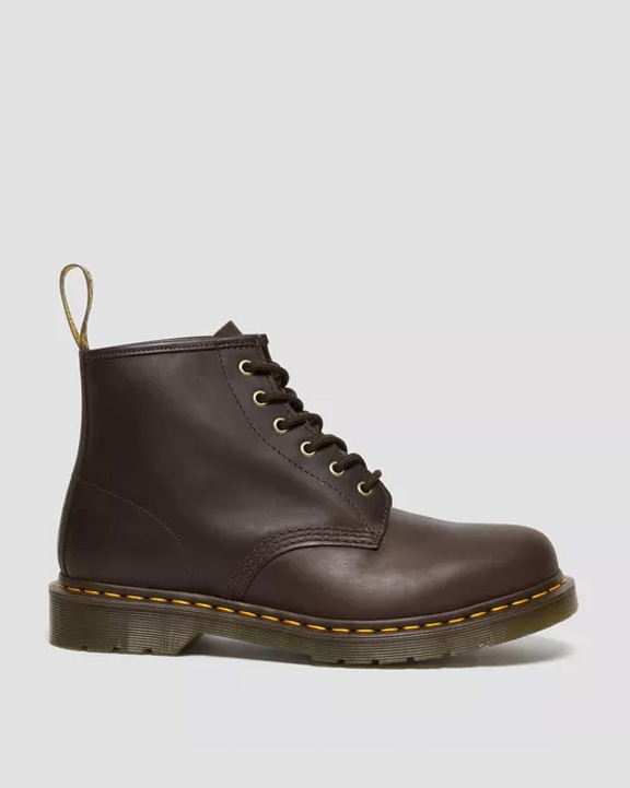 La Crazy Horse es una piel clásica muy usada en DM´s y un pilar de nuestras siluetas más icónicas. Una piel pesada con un acabado desgastado desde el primer paso, que solo mejora con el paso del tiempo. Reconstruimos nuestro elegante botín 101 de 6 ojales con piel Crazy Horse, detallado con ojales dorados y cordones marrones. Termosellados en nuestra resistente suela con cámara de aire y nuestro icónico pespunte amarillo. Acabado con el tirador de talón AirWair. Empeine: 100% Cuero | Forro y plantilla: 60% Cuero / 40% Textil | Suela: 100% PVC