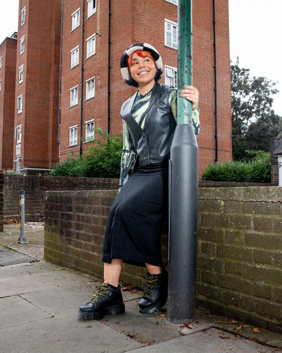 Estilo senderista con actitud lista para el asfalto. El nuevo botín Woodard se presenta con una suela Club Wedge inspirada en los diseños del archivo de DM, con su característico surco y pespunte negro. Incorpora un cuello acolchado para mayor comodidad, cordones de senderismo y herrajes a tono. El tobillo también luce una versión engomada de nuestra tira de talón negra y amarilla. Grizzly es un cuero grueso con un sutil acabado granulado. Construcción: Fabricado con líneas Goodyear termoselladas a 700 °C y reforzadas con nuestro característico pespunte. Plantilla: Puntera más fina y cónica.