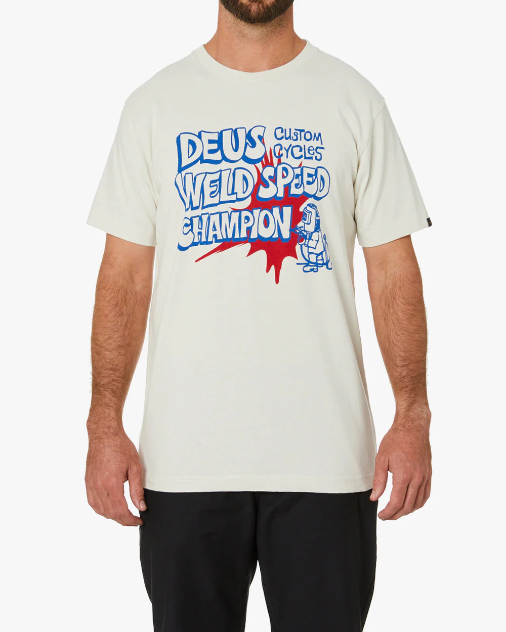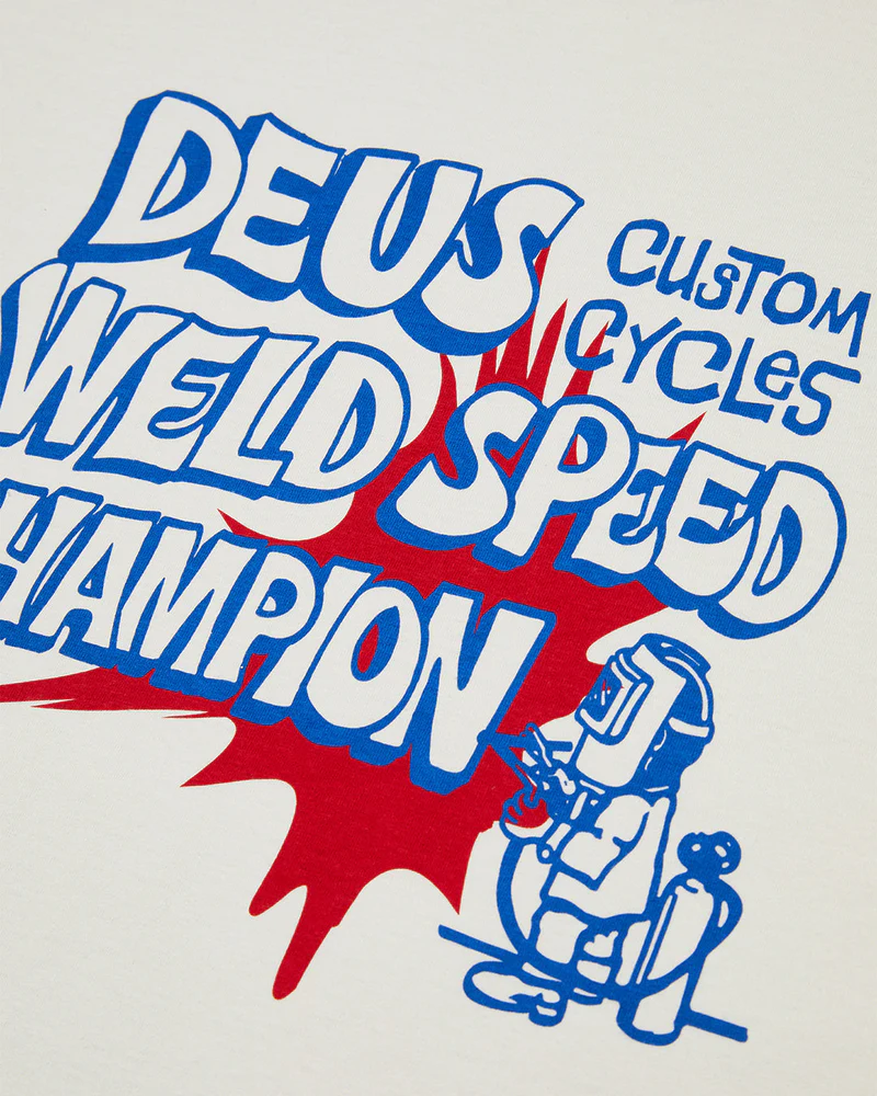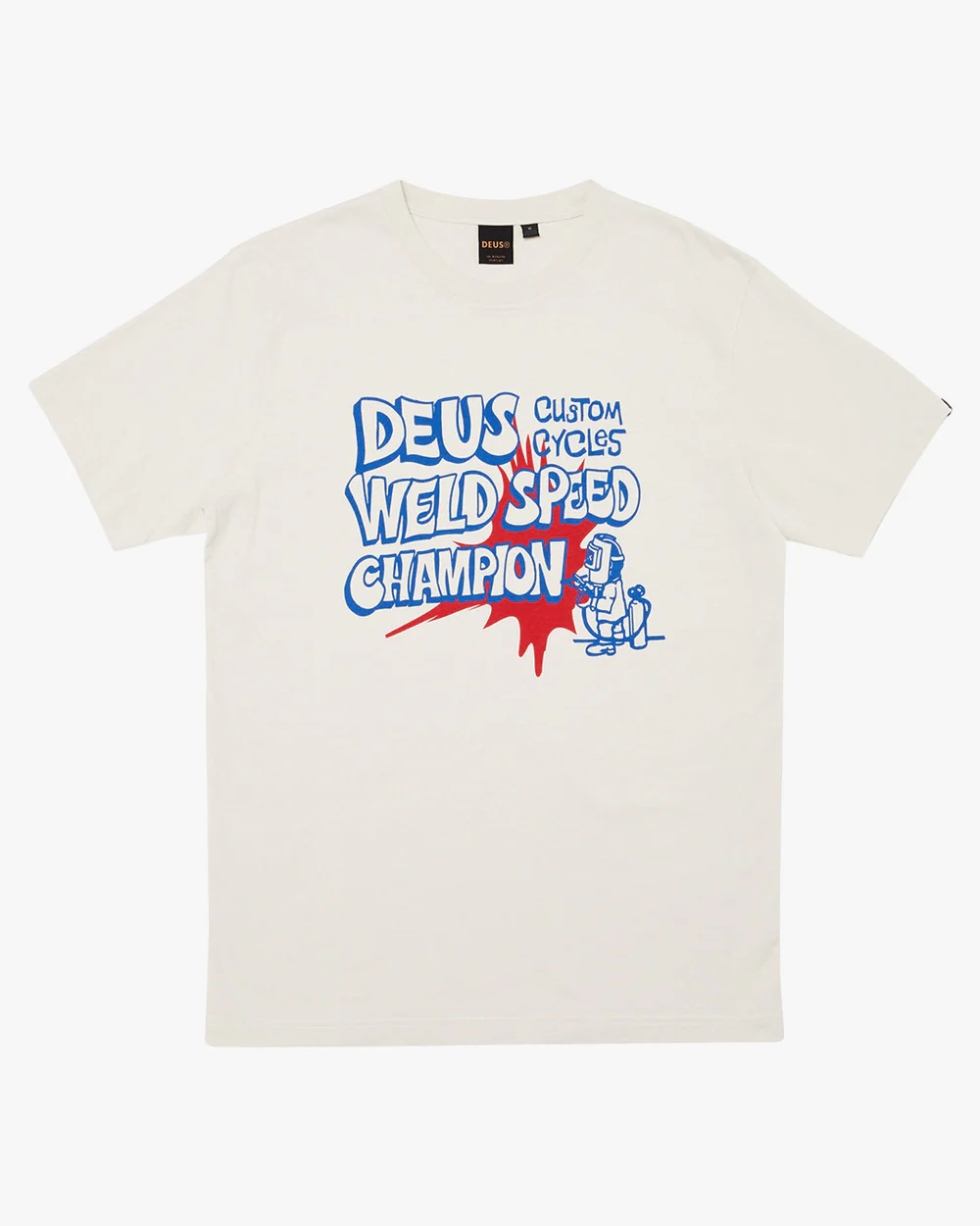 "The¬†Weld Wonder Tee¬†is a part of the Deus Ex Machina Men's Collection. Workshop Wears is a capsule where Stripes run strong and vintage adverts heavily influence the graphic embellishments. In this power capsule you'll find simple, bold and eye-catching design treatment paired with a blue, white and red color scheme - symbolic of American styled workshop wear from the 50s & 60s. This¬†regular fit¬†t-shirt features: ‚ó謆Front¬†and back prints of original Deus artwork ‚óè 100% recycled cotton 220gm jersey fabrication ‚ó謆Heavy enzyme stone wash Designed and tested at the Deus House of Simple Pleasures, Camperdown, Sydney. ¨?"