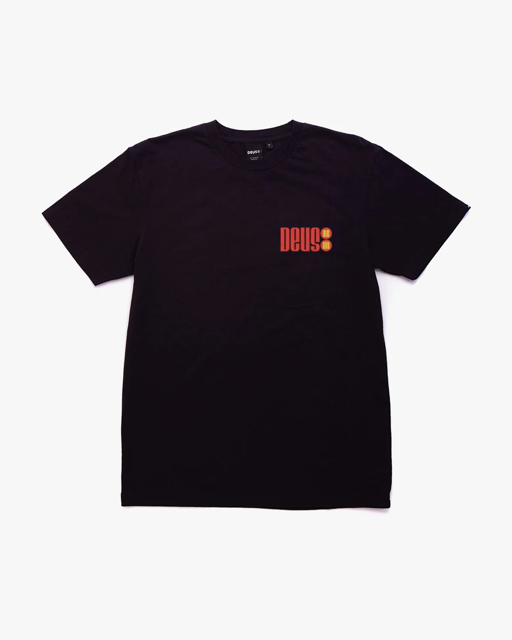 "The Swarmies Tee is a part of the Deus Ex Machina Mens Collection. This regular fit t-shirt features: -Chest and back prints¬†of original Deus artwork ‚-150gm combed cotton jersey fabrication -Garment wash Size (cms) XS S M L XL XXL XXXL Chest Width 46.5 49 51.5 54.5 58.5 63 67.5 Body Length 70 71.5 73 74.5 77 79.5 82 X Shoulder Width 44.1 45.3 46.5 47.7 48.9 50.4 51.9 Sleeve Length 19 19.5 20 20.5 21 21.5 22 Wash Care: -Gentle machine wash with similar colors -Wash inside out -Iron print on reverse Designed and tested at the Deus House of Simple Pleasures, Camperdown, Sydney. "
