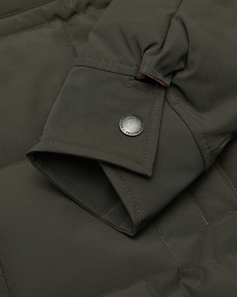 "Workwear’s focus on function, durability and wearable style, and Deus workwear is our modern take on the iconic silhouettes of workwear past and present. The fabrication features heavy moleskin, wool blends, and quilted textiles in dark and rich tones that are set to last, wear and fade to perfection. This relaxed fit padded overshirt features: ? Chest patch and lower welt pockets ? Branded press stud closure ? Woven branded label ? Nylon lining"