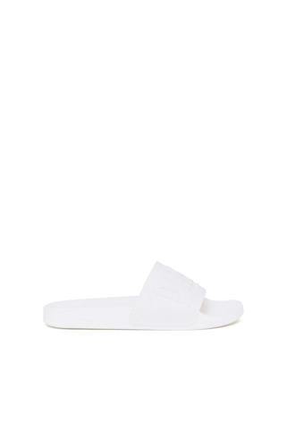 Chanclas unisex con tiras anchas acolchadas y contorno D sutilmente cosido. Se completan con plantilla moldeada y suela antideslizante con el logotipo.