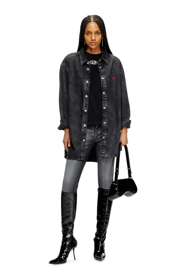 Esta camiseta de cuello redondo para mujer, confeccionada en algodón orgánico, presenta una silueta regular con ribetes en canalé. El logotipo metálico Oval D recortado en el centro del pecho es un detalle característico.