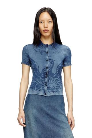 Esta camiseta con tirantes para mujer de la colección FALL WINTER 24 RUNWAY SHOW de DIESEL presenta un uso poco convencional del devoré. La técnica avanzada, que por lo general añade complejidad visual y táctil a telas preciosas como el terciopelo, se ha aplicado al jersey, 'destruyendo' una parte del algodón camuflado con garabatos. Las manchas descubiertas de color liso imitan el patrón de las manchas de sudor. El logotipo distorsionado en relieve y las costuras sobrehiladas de revés completan el diseño exclusivo.