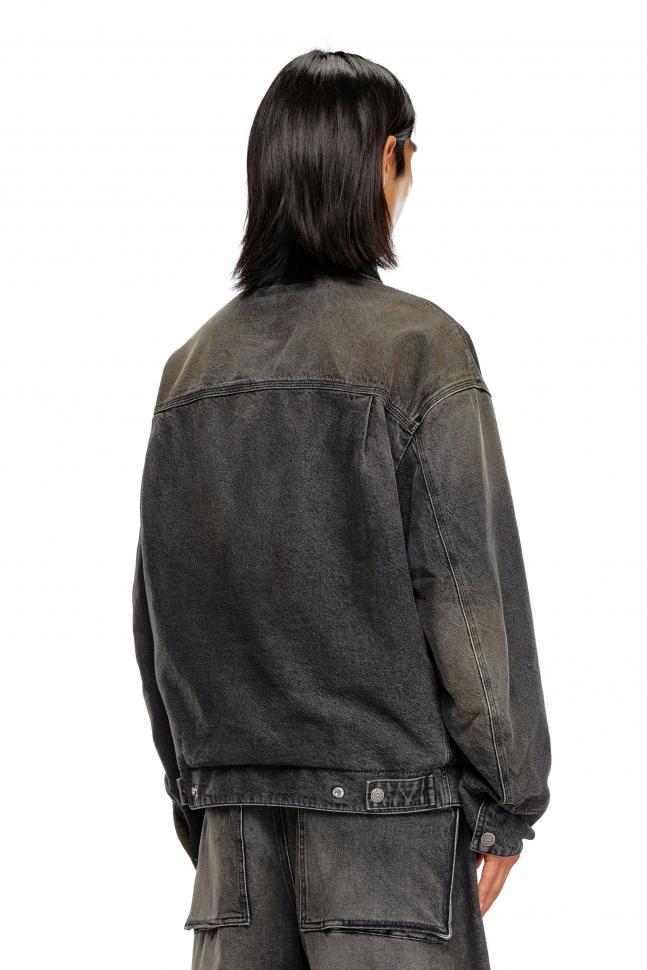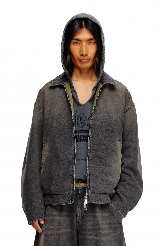 Esta chaqueta para hombre presenta un diseño reversible. Un lado está confeccionado en denim 100 % algodón negro y recuerda el look de las chaquetas trucker, con ajustadores laterales y costuras clásicas de jean. El otro lado está confeccionado en suave tejido técnico de color en contraste.