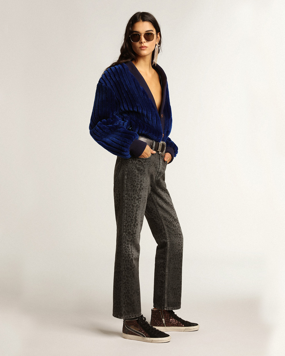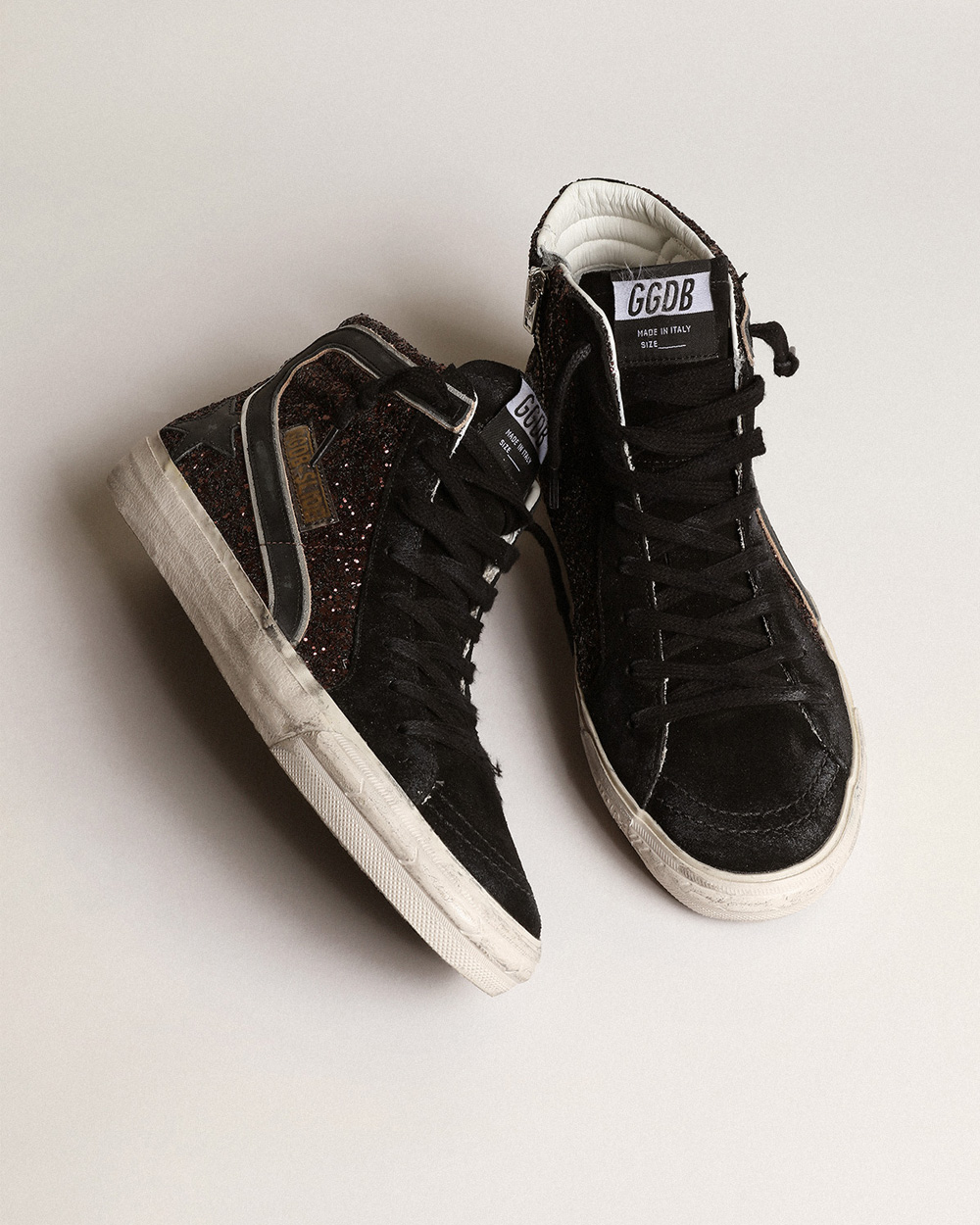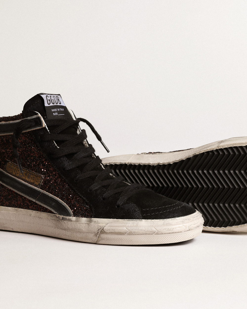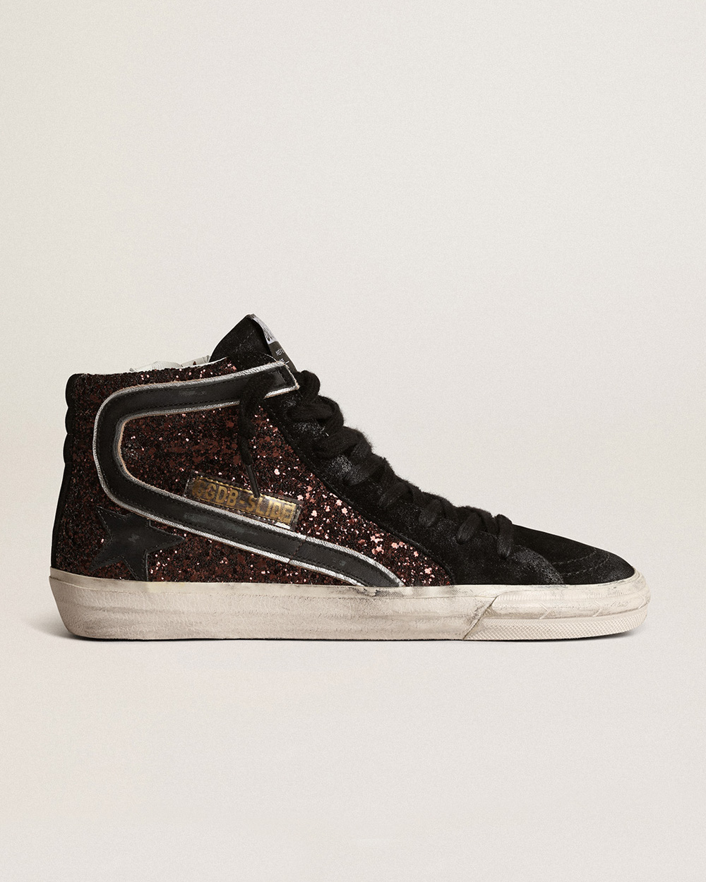 SLIDE GLITTER UPPER SUEDE TOE AND LIST LEATHER