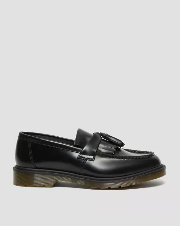 Clásicos, redefinidos. El mocasín Adrian combina un estilo de inspiración mod con la robusta durabilidad de DM, detallado con borlas dobles y flecos estilo kiltie. Nuestro cuero liso pulido duradero se puede usar pulido a la perfección o desgastado y resistente. La suela ranurada mantiene el rebote en tu paso, asegurada con una construcción simple soldada Goodyear.