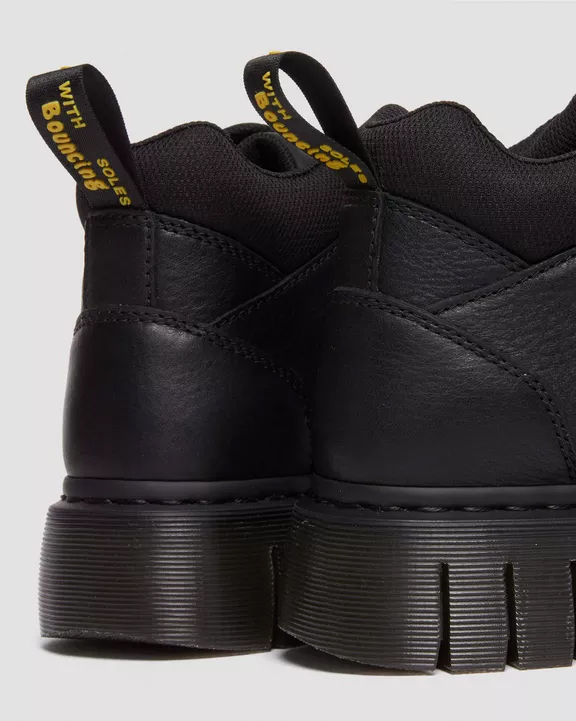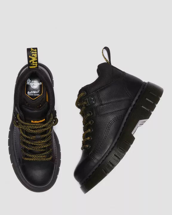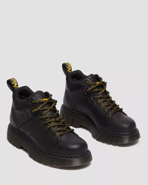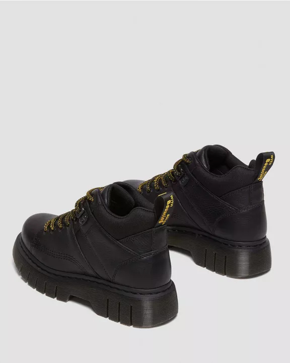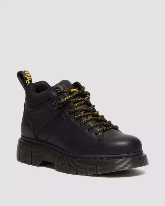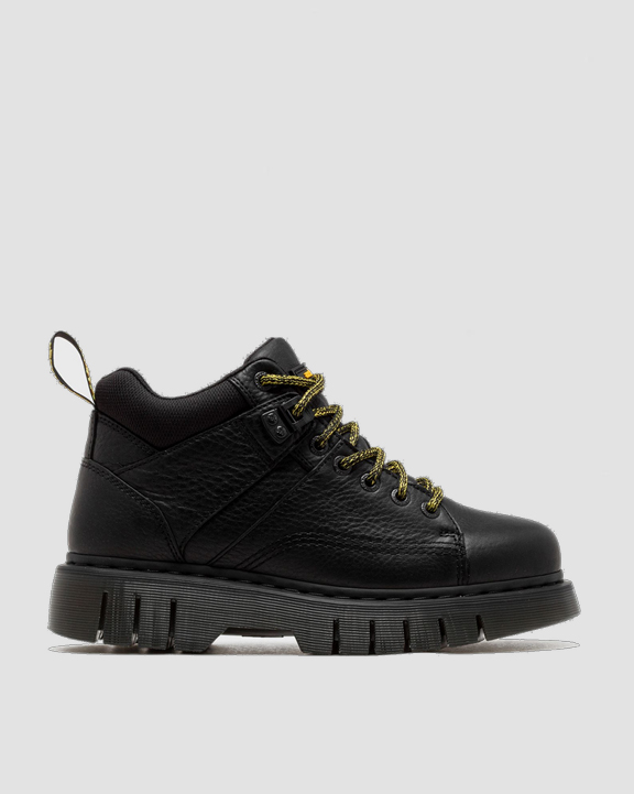 Estilo senderista con actitud lista para el asfalto. El nuevo botín Woodard se presenta con una suela Club Wedge inspirada en los diseños del archivo de DM, con su característico surco y pespunte negro. Incorpora un cuello acolchado para mayor comodidad, cordones de senderismo y herrajes a tono. El tobillo también luce una versión engomada de nuestra tira de talón negra y amarilla. Grizzly es un cuero grueso con un sutil acabado granulado. Construcción: Fabricado con líneas Goodyear termoselladas a 700 °C y reforzadas con nuestro característico pespunte. Plantilla: Puntera más fina y cónica.