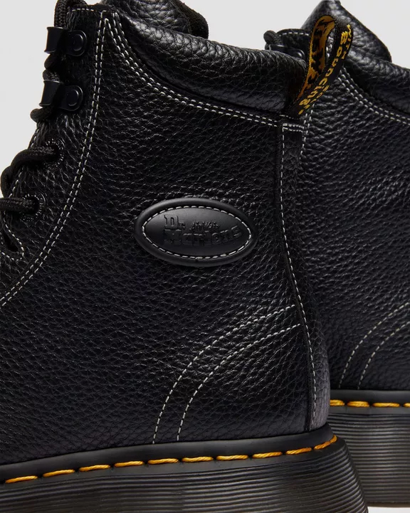 Nuestra nueva bota Buzz de 8 ojales está inspirada en el archivo y llena de ADN Doc. Se asienta sobre nuestra suela Buzz gruesa con borde de barril, marcada con el diseño estriado de DM, costuras amarillas y un estampado de hojas en la suela. La parte superior está hecha de suave piel napa fresada negra y cuenta con un parche de goma de la marca y costuras en contraste. Además, cuenta con un cuello acolchado, para que tu primer uso sea tan cómodo como atractivo.
