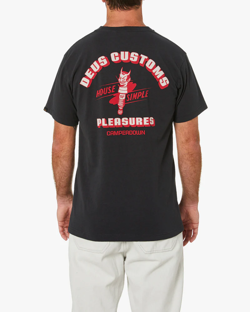 "The Totem Tee is a part of the Deus Ex Machina Men's Collection. This regular fit t-shirt features: ● Front and back prints of original Deus artwork ● 100% recycled cotton 220gm jersey fabrication ● Heavy enzyme stone wash Designed and tested at the Deus House of Simple Pleasures, Camperdown, Sydney. "