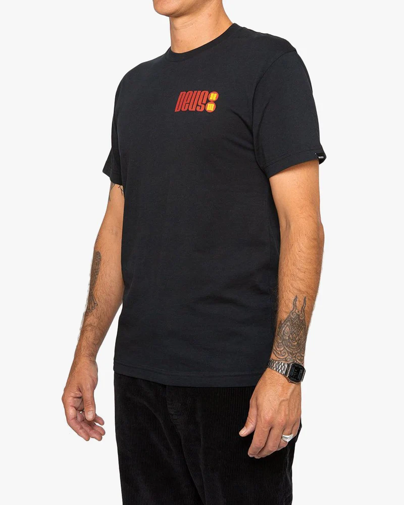 "The Swarmies Tee is a part of the Deus Ex Machina Mens Collection. This regular fit t-shirt features: -Chest and back prints¬†of original Deus artwork ‚-150gm combed cotton jersey fabrication -Garment wash Size (cms) XS S M L XL XXL XXXL Chest Width 46.5 49 51.5 54.5 58.5 63 67.5 Body Length 70 71.5 73 74.5 77 79.5 82 X Shoulder Width 44.1 45.3 46.5 47.7 48.9 50.4 51.9 Sleeve Length 19 19.5 20 20.5 21 21.5 22 Wash Care: -Gentle machine wash with similar colors -Wash inside out -Iron print on reverse Designed and tested at the Deus House of Simple Pleasures, Camperdown, Sydney. "