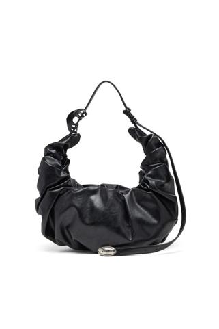 Este bolso estructurado es sinónimo de estilo distintivo de Diesel y se ha convertido en un accesorio característico. Esta versión brillante está confeccionada con tejido brillante, hilado con hilo brillante y enriquecido con un estampado tipo mármol en tonos preciosos. Está diseñado con un asa que se ajusta al hombro y una correa opcional tipo cinturón para llevarlo como bandolera. La solapa está adornada con la icónica placa de metal Oval D, incrustada en el mismo tejido para un refinado look all-over.
