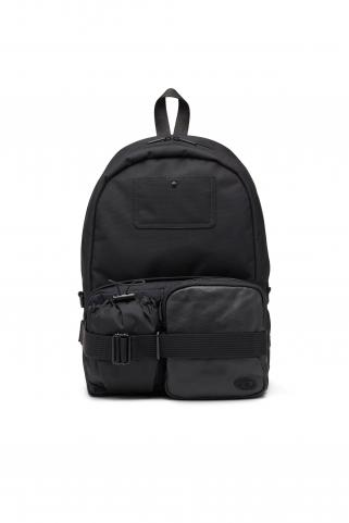 Bandolera ergonómica y de un solo tirante. Este bolso unisex, de color negro con toques de rojo, está hecho de tejido exterior de jacquard a cuadros y está repleto de detalles funcionales: una correa ergonómica con un bolsillo con cremallera, cordones elásticos para comprimir su tamaño y una cremallera frontal gruesa que cuenta con las letras del logotipo de metal a lo largo de su longitud.