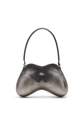 Este bolso para mujer es elegante y a la vez divertido gracias a su forma sinuosa que se inspira en los mandos de videojuegos. Está confeccionado en cuero suave con un acabado semibrillante, adornado con un detalle metálico brillante Oval D en la solapa. La correa se ajusta y se puede llevar cruzada.